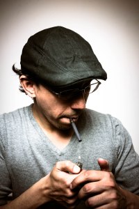 Here I’ve gone for an intense, overprocessd look that leaves the highlights so burned out and the midtones so rough and jagged that the eye’s drawn to the dark tones, the area of rest right under the brim of my hat.